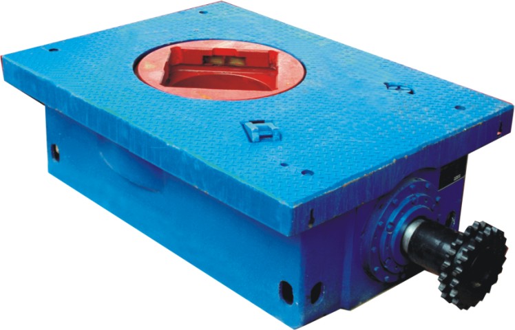 轉(zhuǎn)盤是在進行鉆井作業(yè)時,通過一對錐齒輪副實現(xiàn)減速,使轉(zhuǎn)臺獲得一定范圍內(nèi)的轉(zhuǎn)速和扭矩輸出,驅(qū)動鉆具進行工作,并在起下鉆和下套管時,懸掛管柱的設備